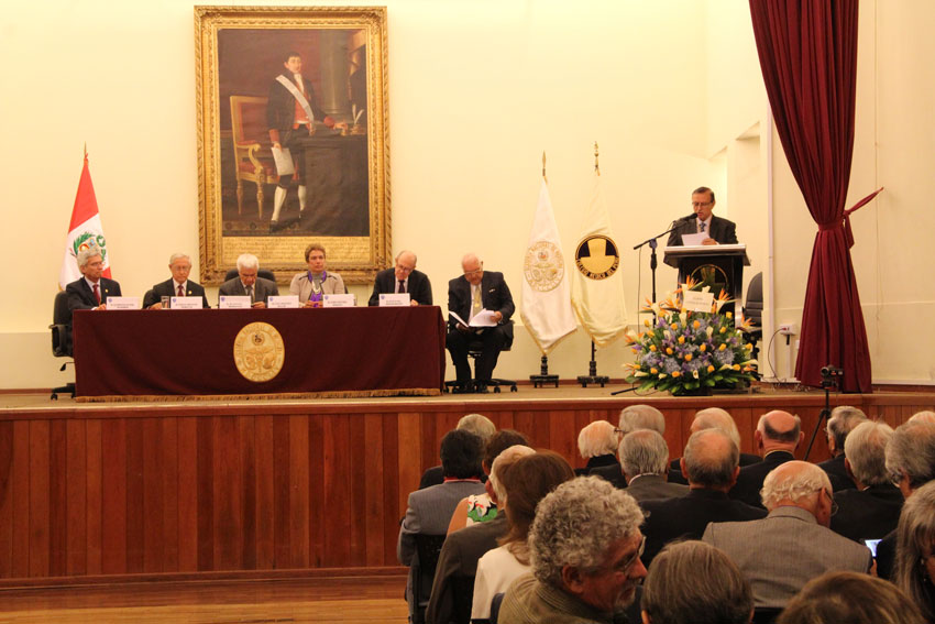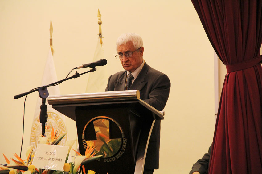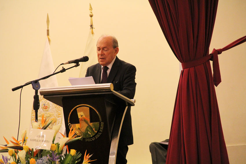 Lectura de la Ley de creación de la Academia Nacional de Medicina y presentación del conferencista por el AN Dr. Agustín Iza Stoll, Secretario Permanente.