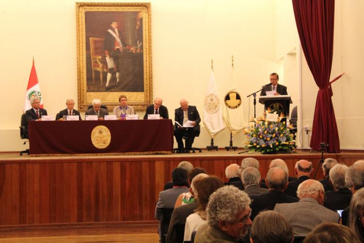 Lectura de la Ley de creación de la Academia Nacional de Medicina y presentación del conferencista por el AN Dr. Agustín Iza Stoll, Secretario Permanente.