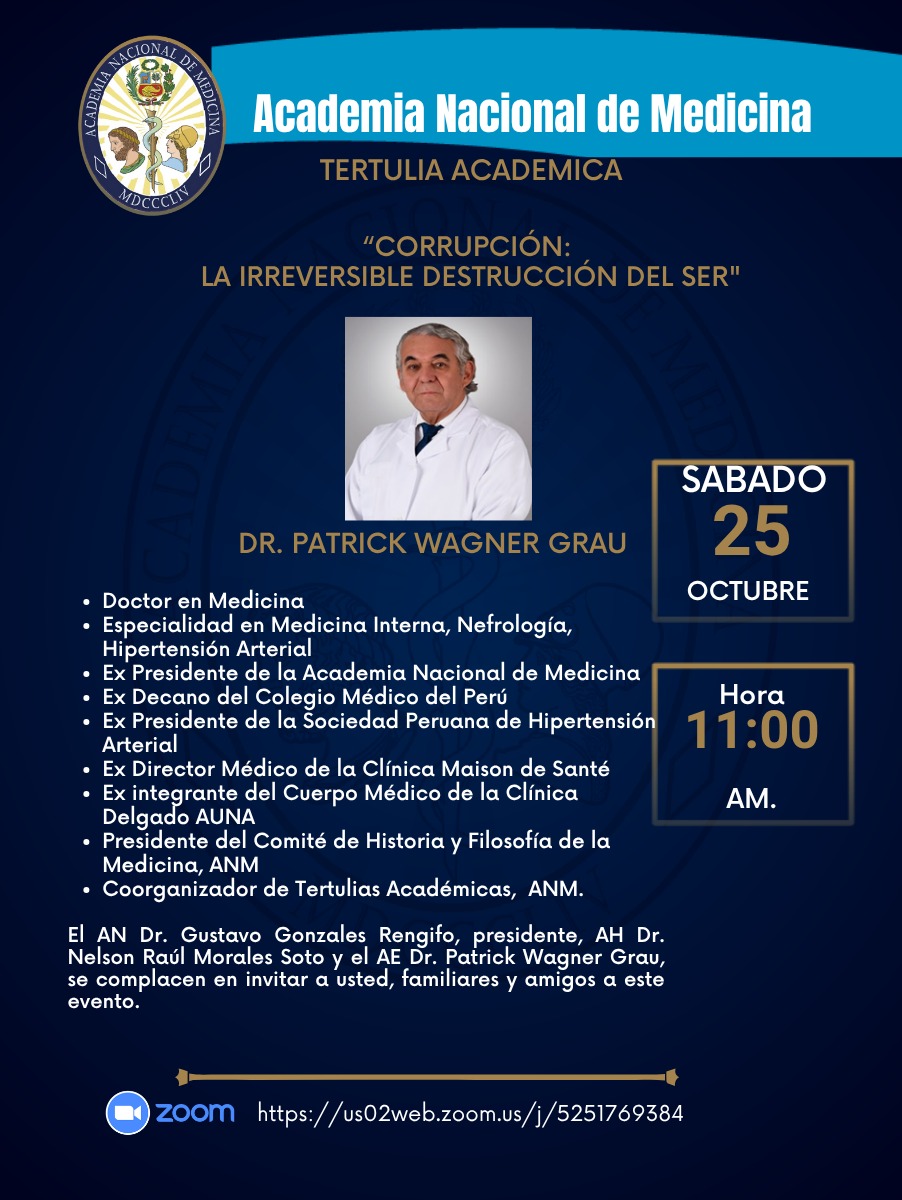 Oct 25 Oct/25 15:42 Sábado, Octubre 25, 2025 - 15:42CORRUPCIÓN: LA IRREVERSIBLE DESTRUCCIÓN DEL SER DR. PATRICK WAGNER GRAU Recursos relacionados